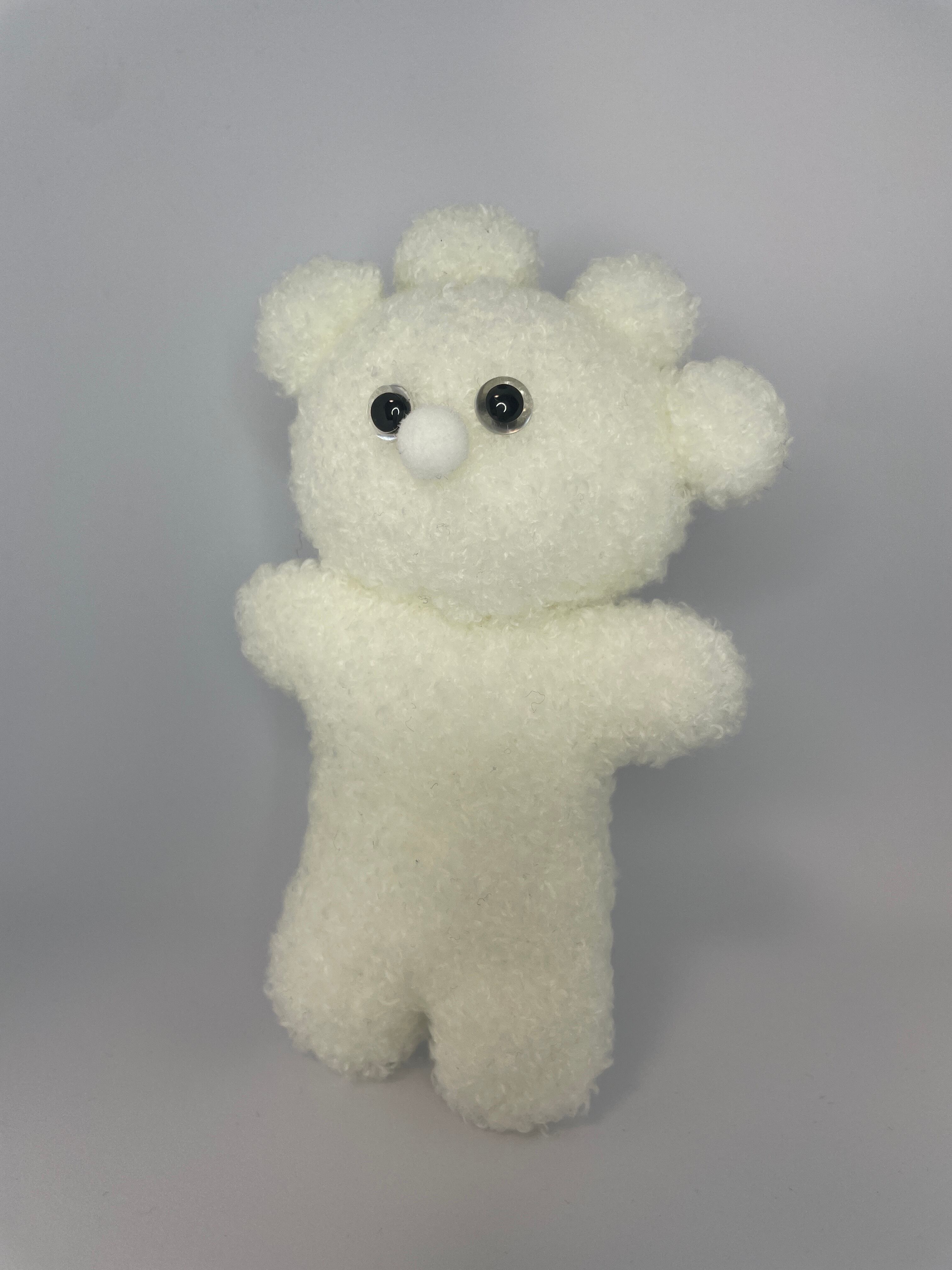 素材:ふわふわの布、刺繍糸、綿、ぼんてん